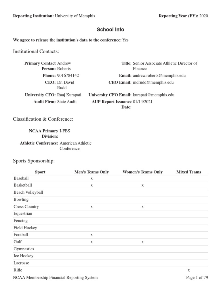 Public and faculty sales. This information can be managed within the NCAAs Compliance Assistance CA software. Student sales Shipping and Handling fees. Please enable it to continue. Amounts received from individuals corporations associations. University of Kansas Reporting Year FY. 22 Coaching Salaries Benefits and Bonuses paid by the University. Kenyon College Reporting Year FY. 2019 NCAA Membership Financial Reporting System Page 5 of 80 ID Item Amount Definition 8 Contributions 40105757 Input contributions provided and used by athletics in the reporting year including.