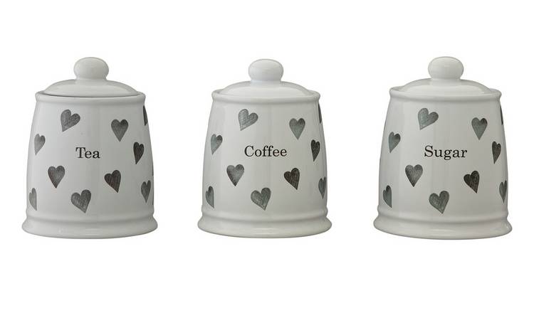 Typhoon Living Grey Tea Coffee Sugar Storage. DAYSEN Kitchen Canister Set of 3 Storage Jars with Window Cover Lids for Sugar Food Tea Coffee Candy Container Sets Grey 46 out of 5 stars 8 3487 34. LIVIVO 5pc Kitchen Storage Set with Airtight Bamboo Lids Includes Tea Coffee Sugar with Matching Biscuit Barrel Canister Jar Stylish Bread Bin Diamond Embossed Design Matt Finish Grey 43 out of 5 stars 1237.
